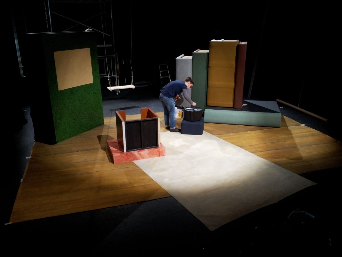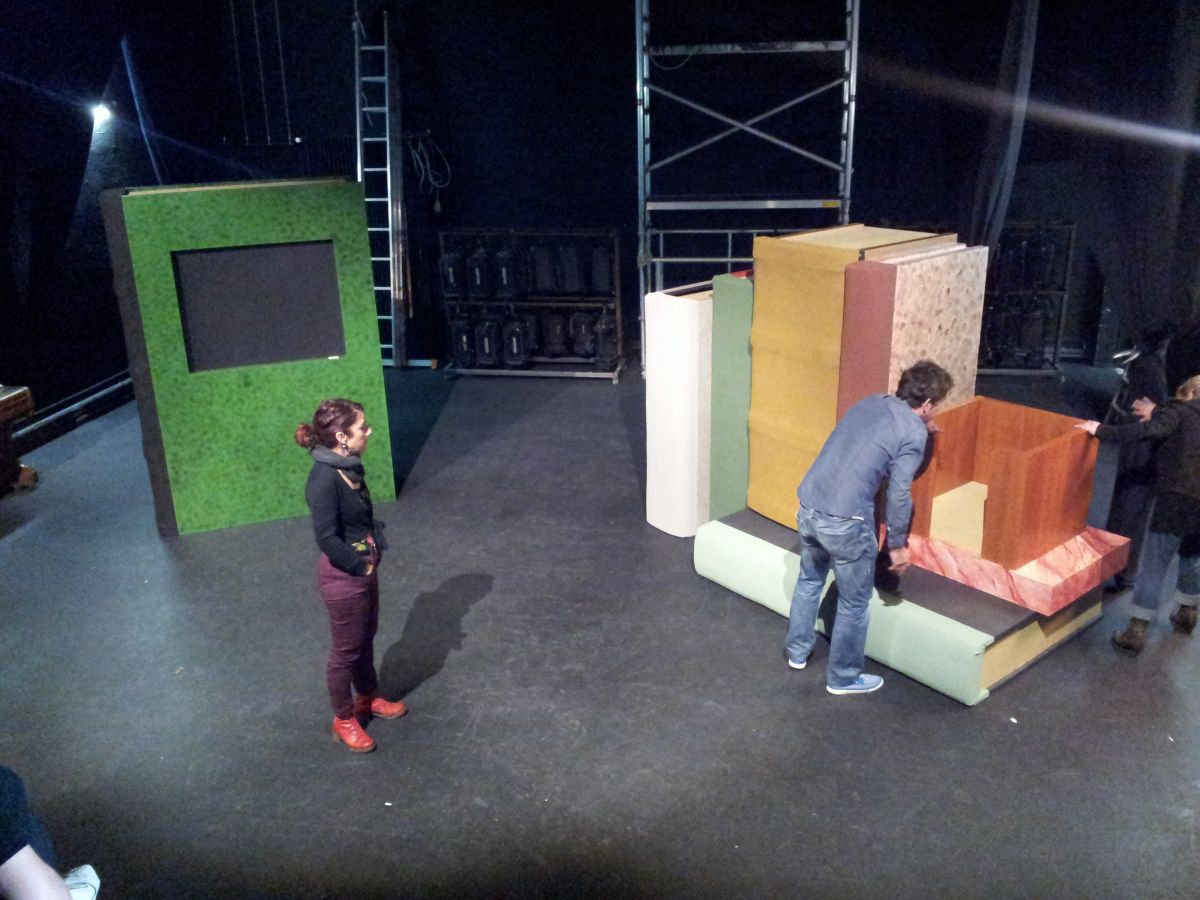 Pour la réalisation, c'était la première fois que je travaillais avec mon ami Raphaël Heutger sur un projet aussi complexe. Les plans fournis devaient être à la hauteur mais le résultat fut enthousiasmant! Et comme d'habitude, super collaboration avec Lola Sacier pour la peinture. Le décor a d'abord été monté au théâtre Waouw à Aigle pour les répétitions et la création avant de tourner.