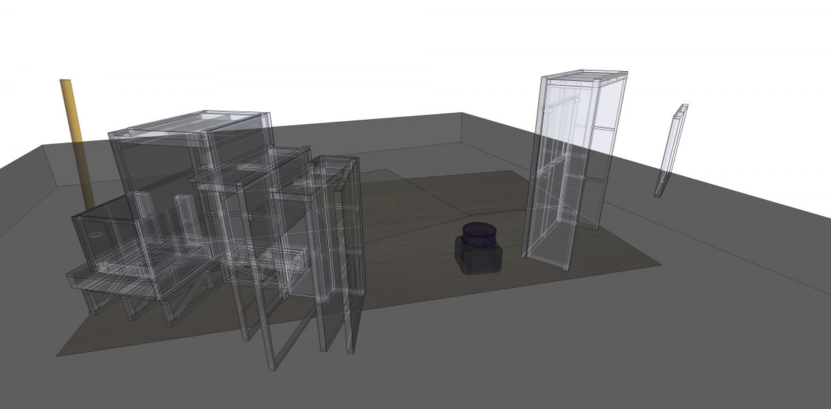 Une fois le principe accepté, la modélisation sur Sketchup a pu démarrer. Patiente élaboration entre la cohérence de l'échelle des éléments, la multiplication des possibilités de jeu, les concepts de réalisation et le montage des éléments. au final on arrive à ça: